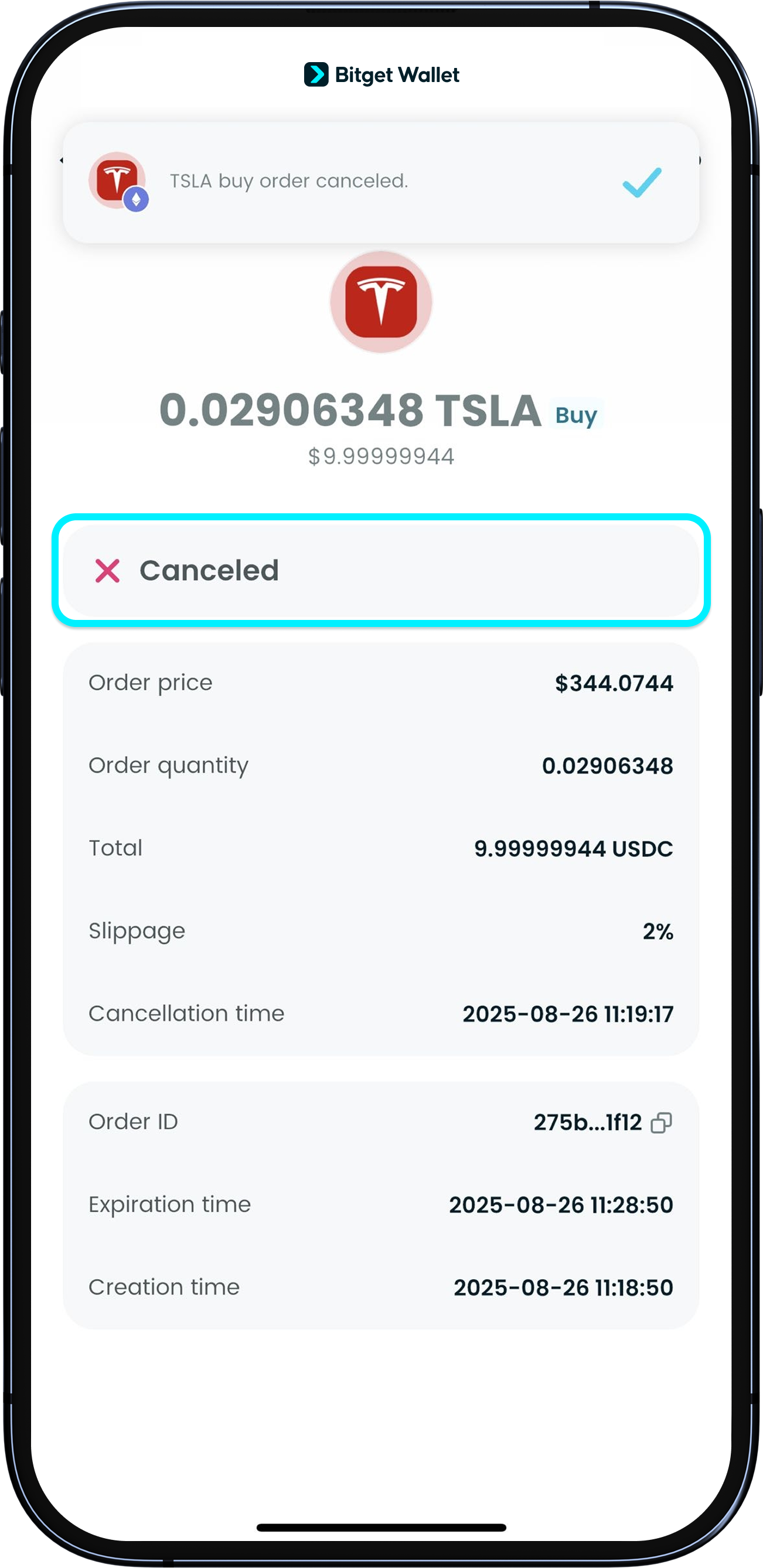 Auch bei einer Stornierung wird die Aktion On-Chain aufgezeichnet, daher ist Gas erforderlich. Da kein Handel stattgefunden hat, werden keine Trading-Gebühren erhoben.