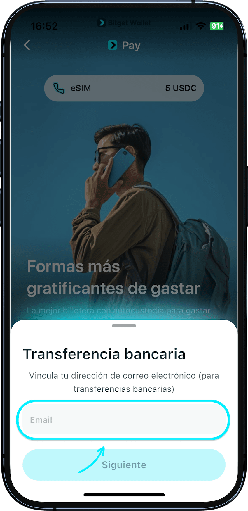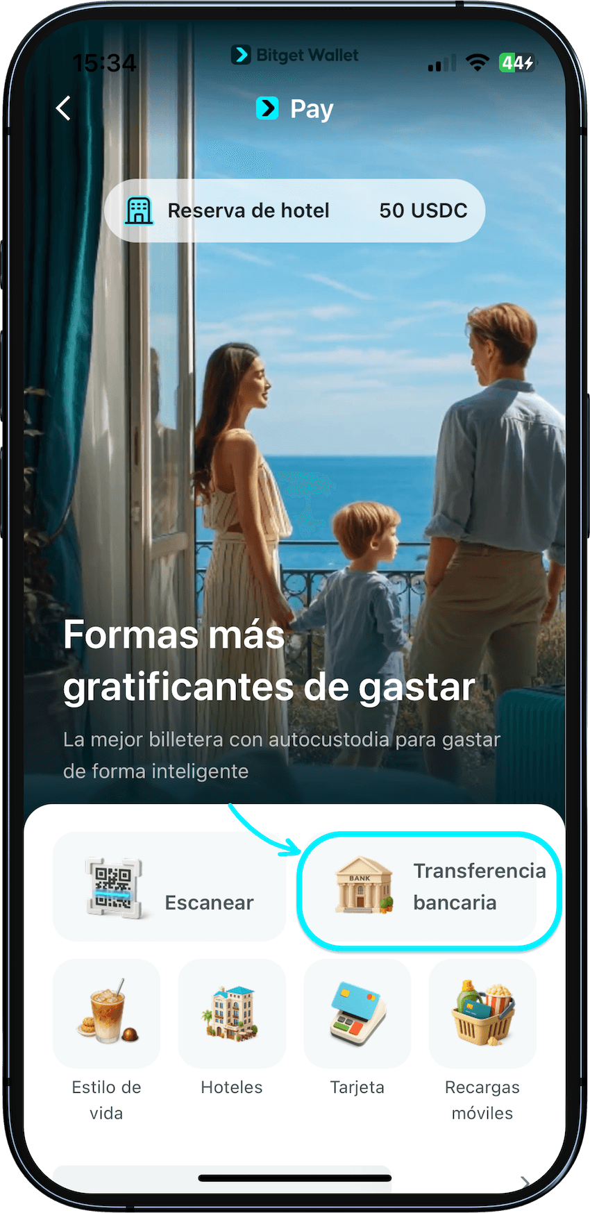 Desde Inicio, toca Pagar > Transferencia bancaria.