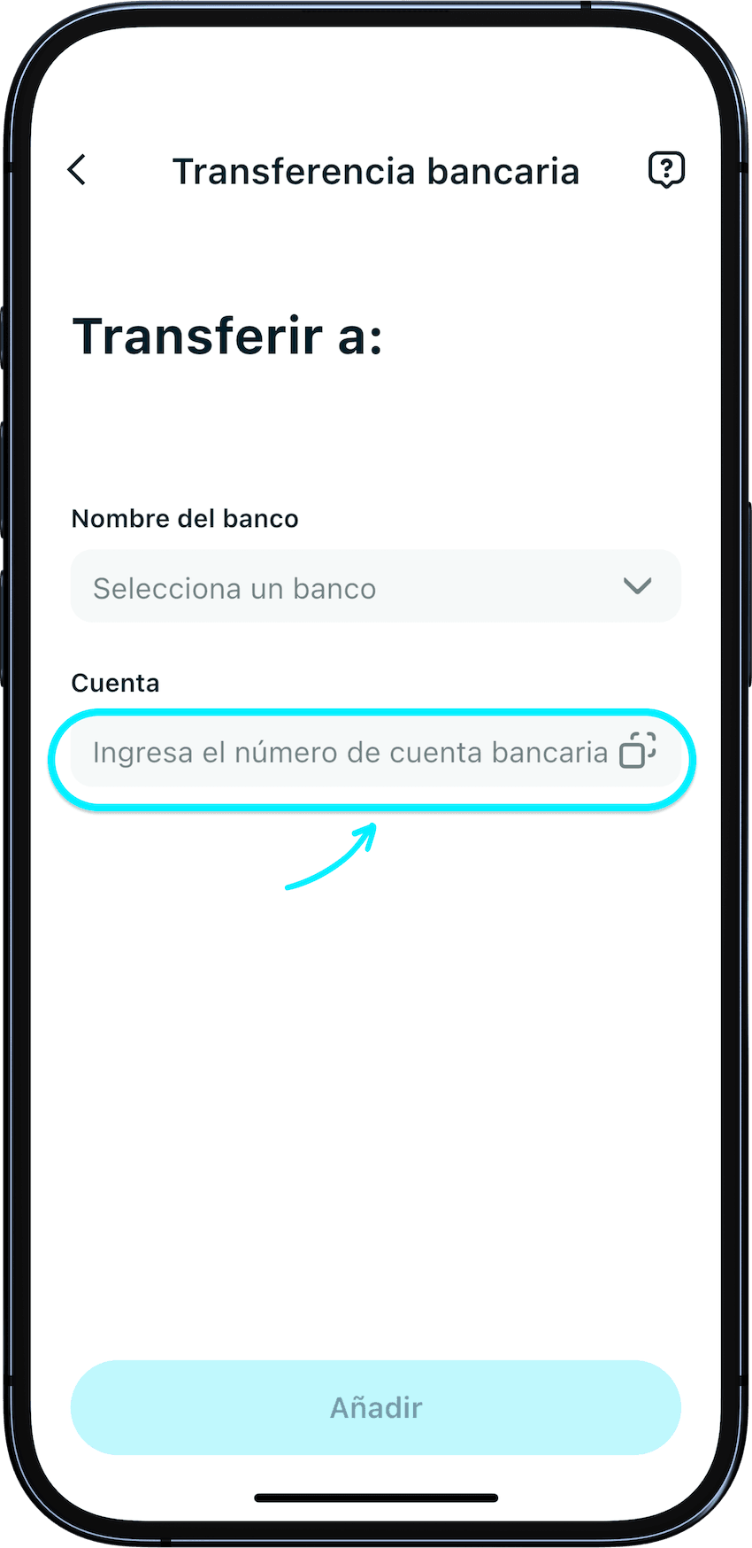 Ingresa los datos de la cuenta bancaria del destinatario