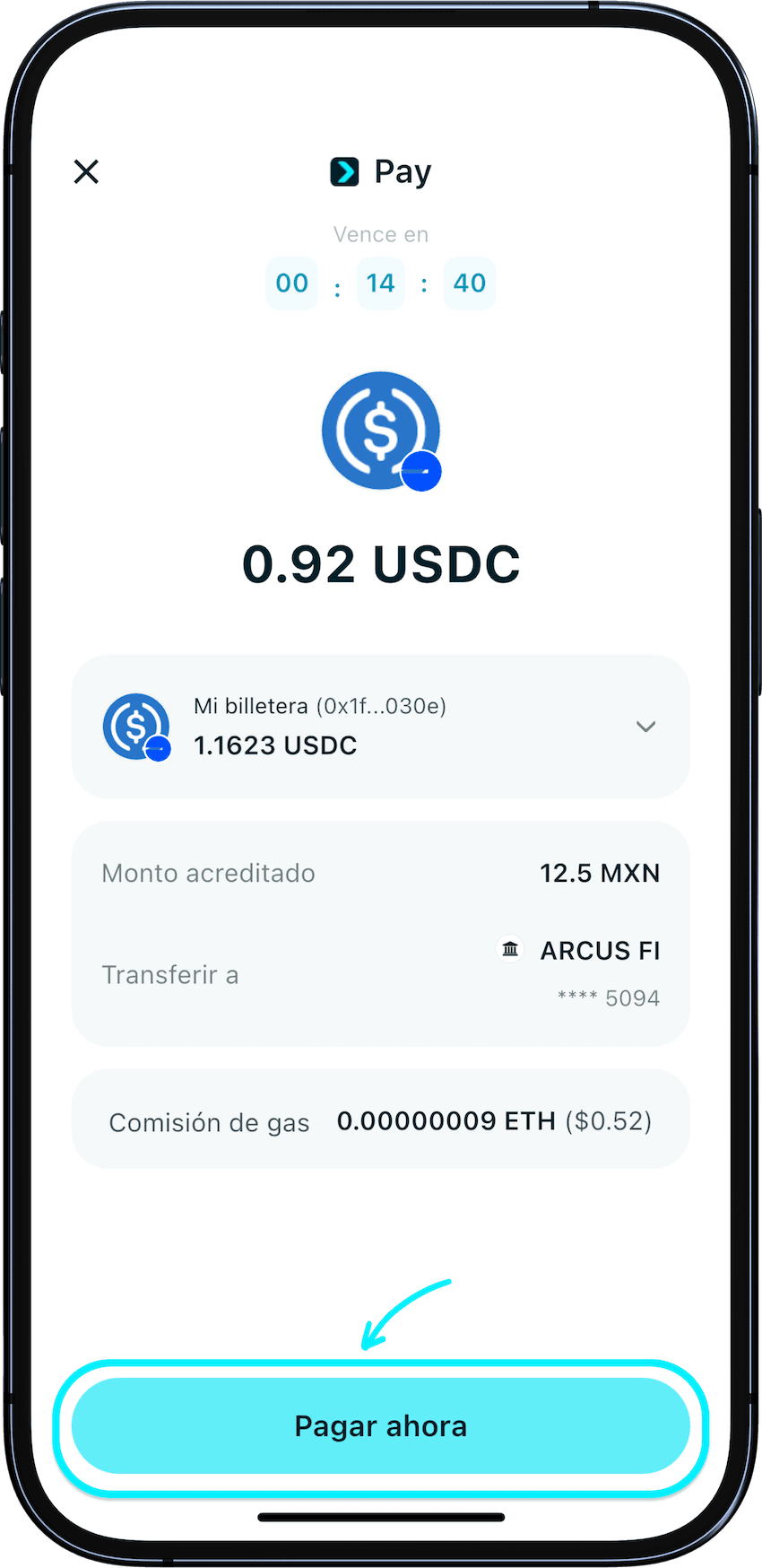 En la página de confirmación, verás el monto que se deducirá de tu billetera y el monto que recibirá el destinatario según los tipos de cambio en tiempo real <b>(menos una pequeña comisión por transacción)</b>.