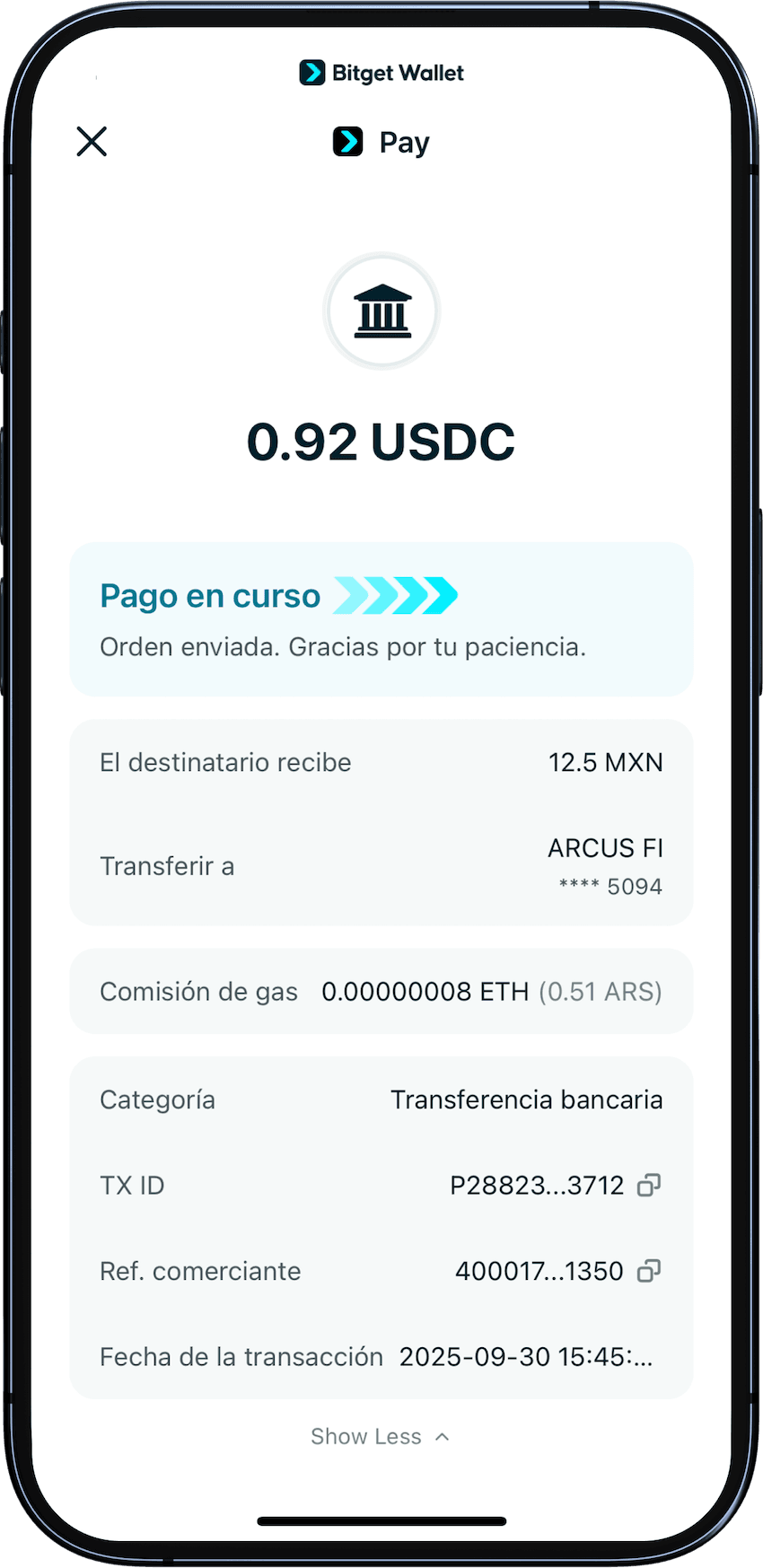 La mayoría de las transferencias se completan al instante, dependiendo de los tiempos de procesamiento del banco del destinatario.
